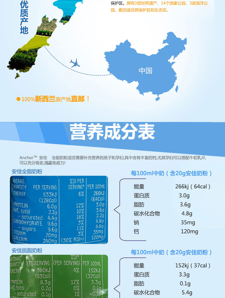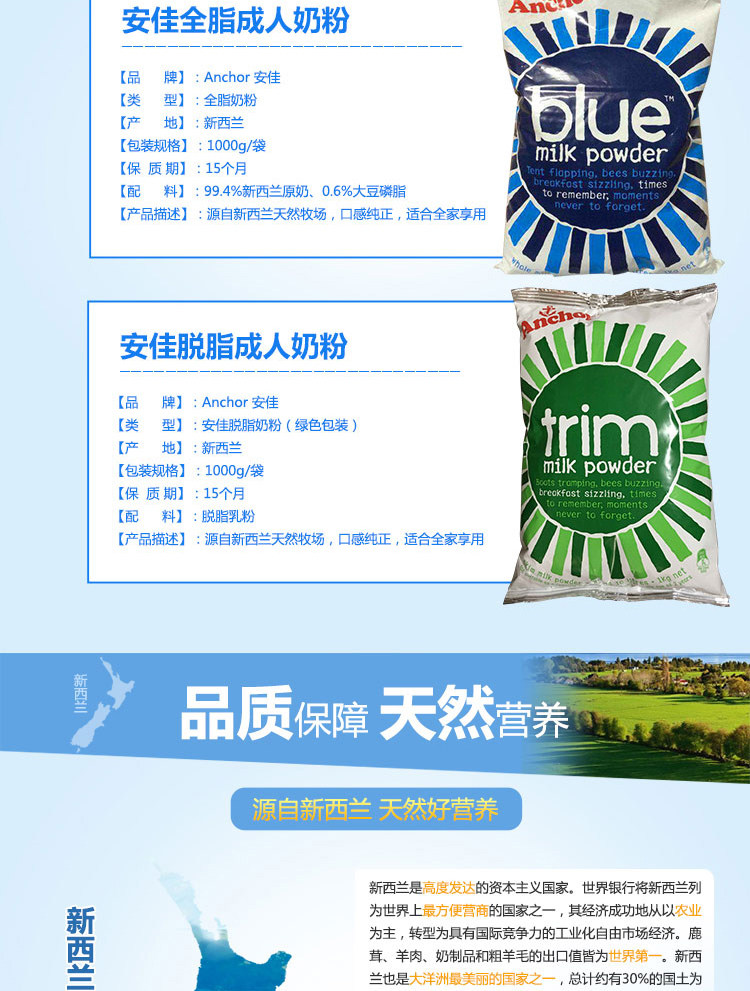 【产品名称】 Anchor(安佳)成人全脂奶粉
